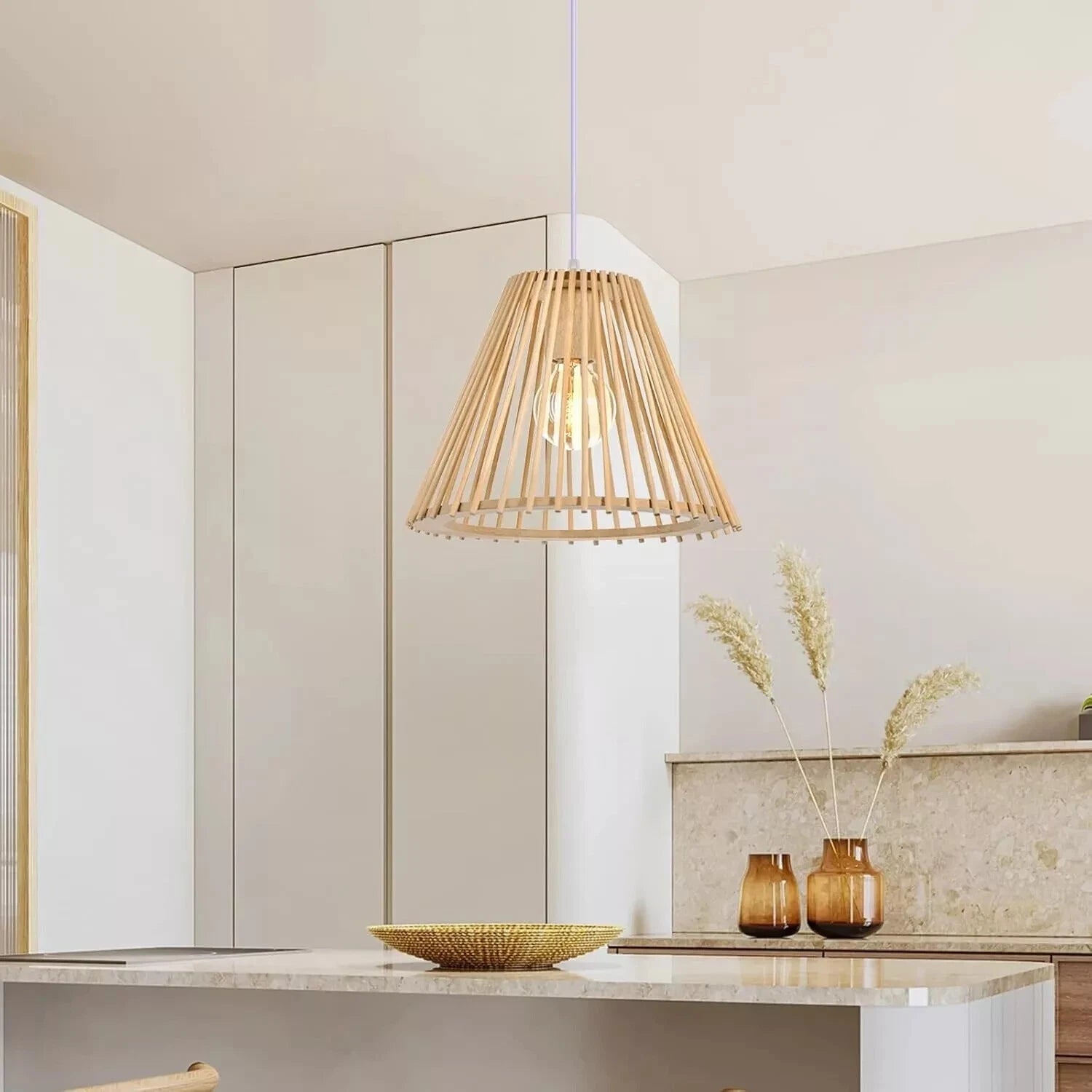 Arturesthome Coastal Pendant Chandelier - Adjustable Height, LED, Wood Shade