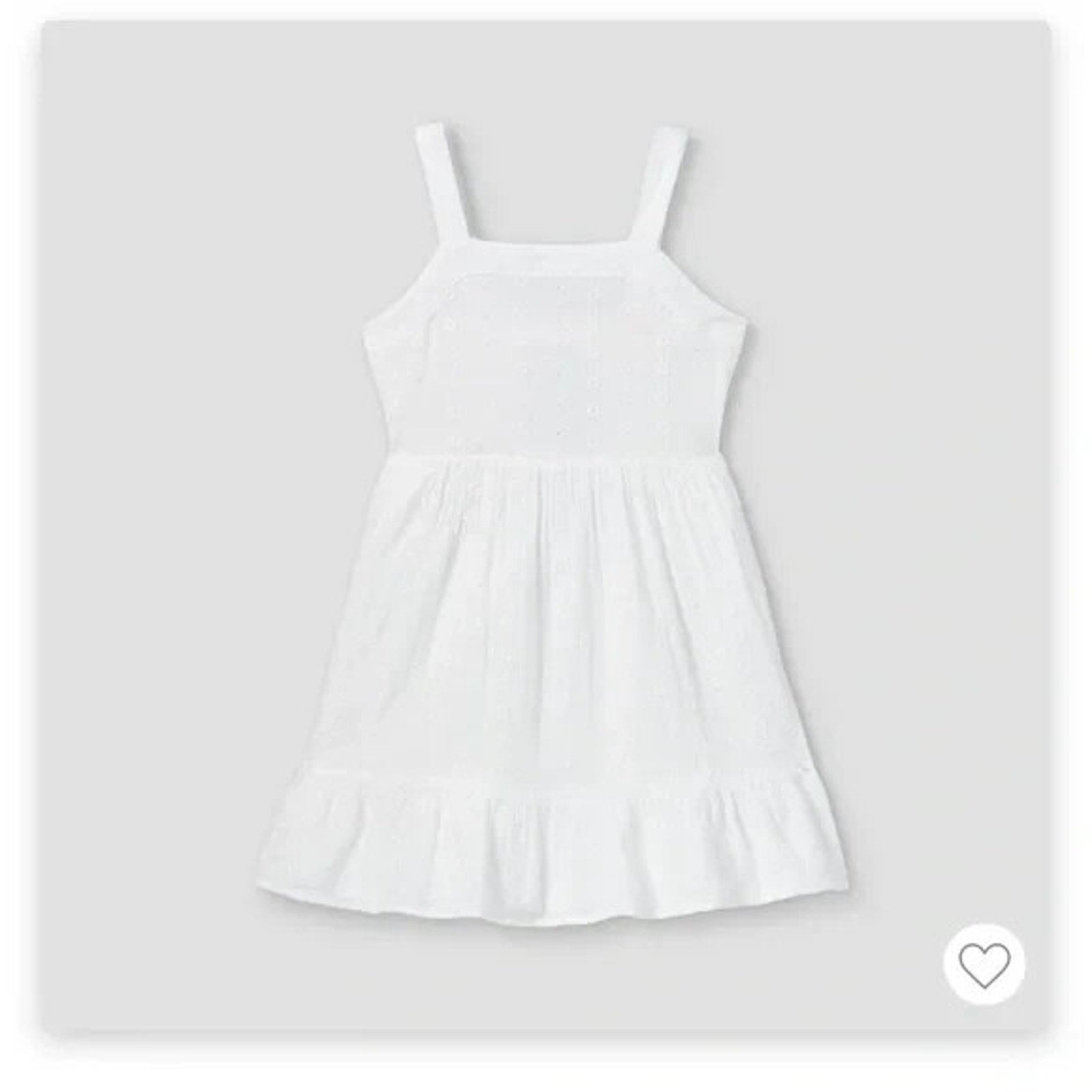 The Cat & Jack Girls' Tie-Back Sleeveless Woven White Dress in size XXL (18) Plus is a classic and versatile garment perfect for various occasions such as travel, parties, or casual outings. Made from lightweight cotton with a fit and flare style, this knee-length dress features a round neck, flutter sleeves, and ruffle accents for a charming look. Easy to care for with machine washable fabric, this dress is designed for comfort and style for girls in the summer, fall, and spring seasons.