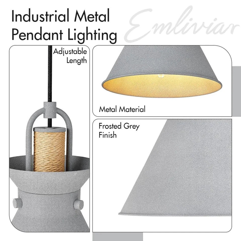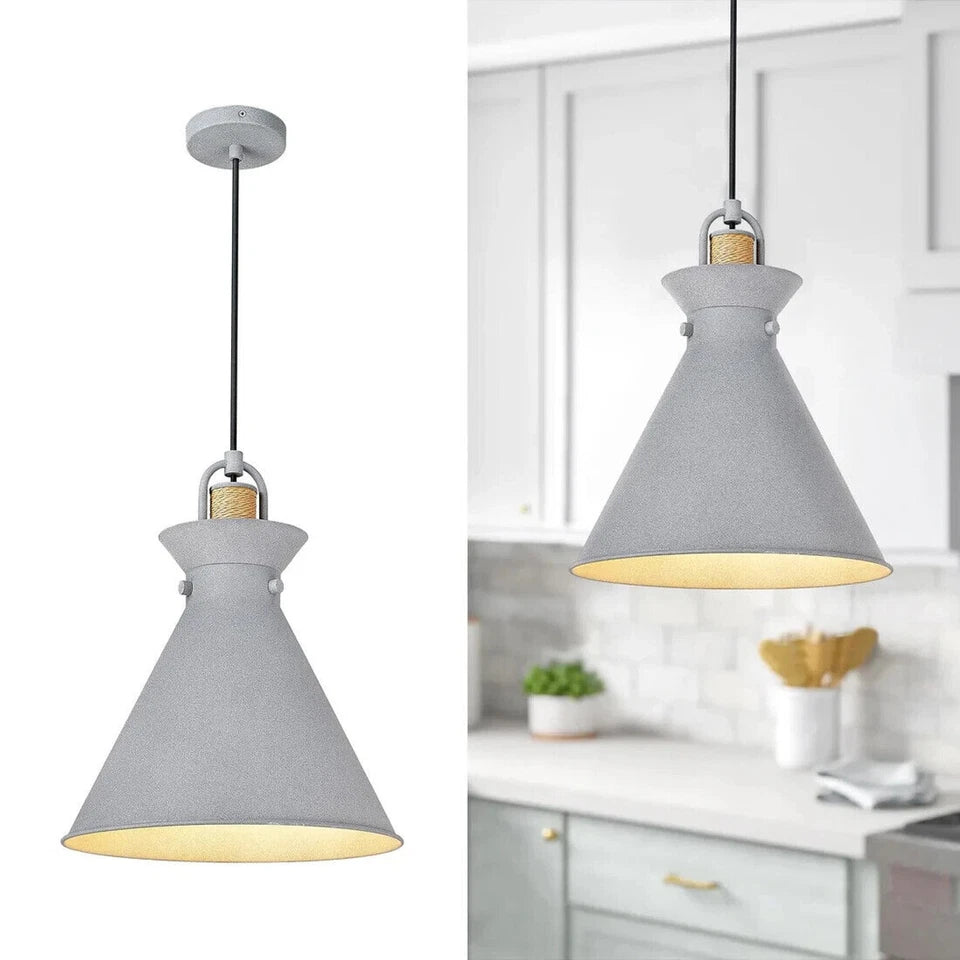 Vintage Industrial Pendant Ceiling Light Fixture – Grey Metal Cone Shade, Adjustable Cord