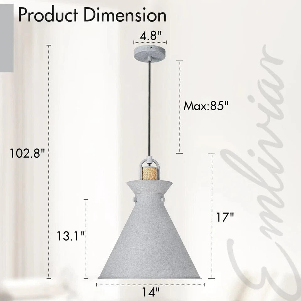 * Stylish Design: This hanging ceiling light features a sleek cone metal lampshade that focuses light directly on your table, making it ideal for task lighting. Its frosted grey finish and unique twine design blend simplicity with modern elegance, fitting seamlessly into any home décor.