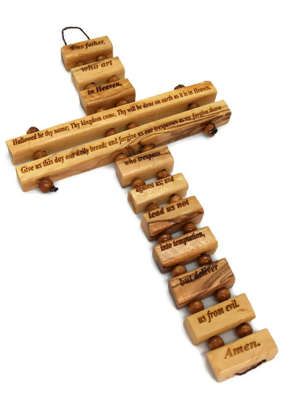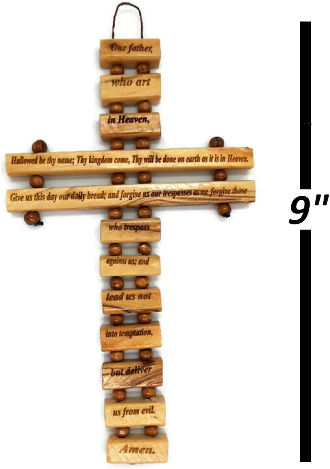 Holy Land Lord Prayer Olive Wood Hanging (9-Inch) Cross Christian religious Jerusalem décor from Bethlehem