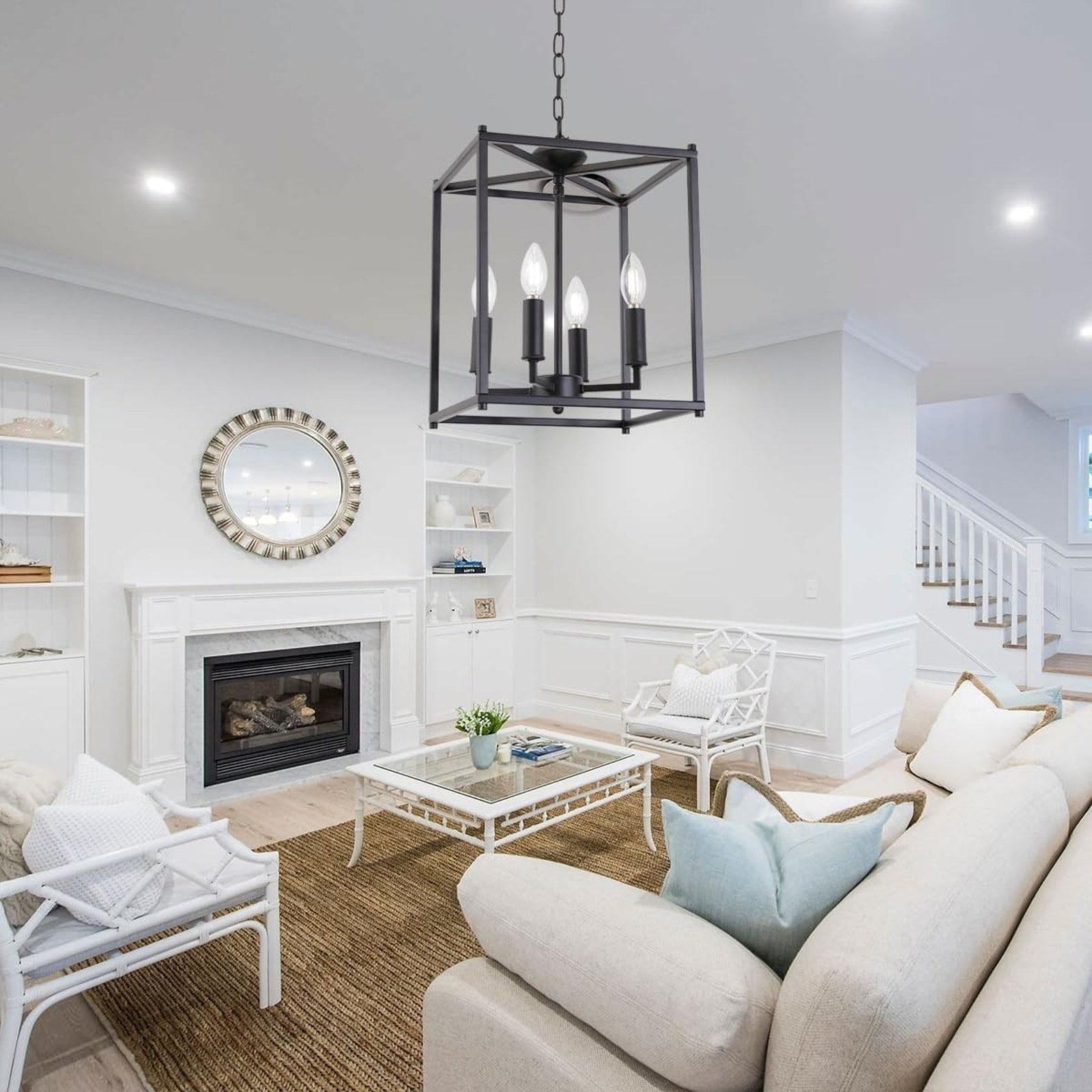 New 4-Light Farmhouse Pendant Chandelier Matte Black Lantern Cage Fixture
