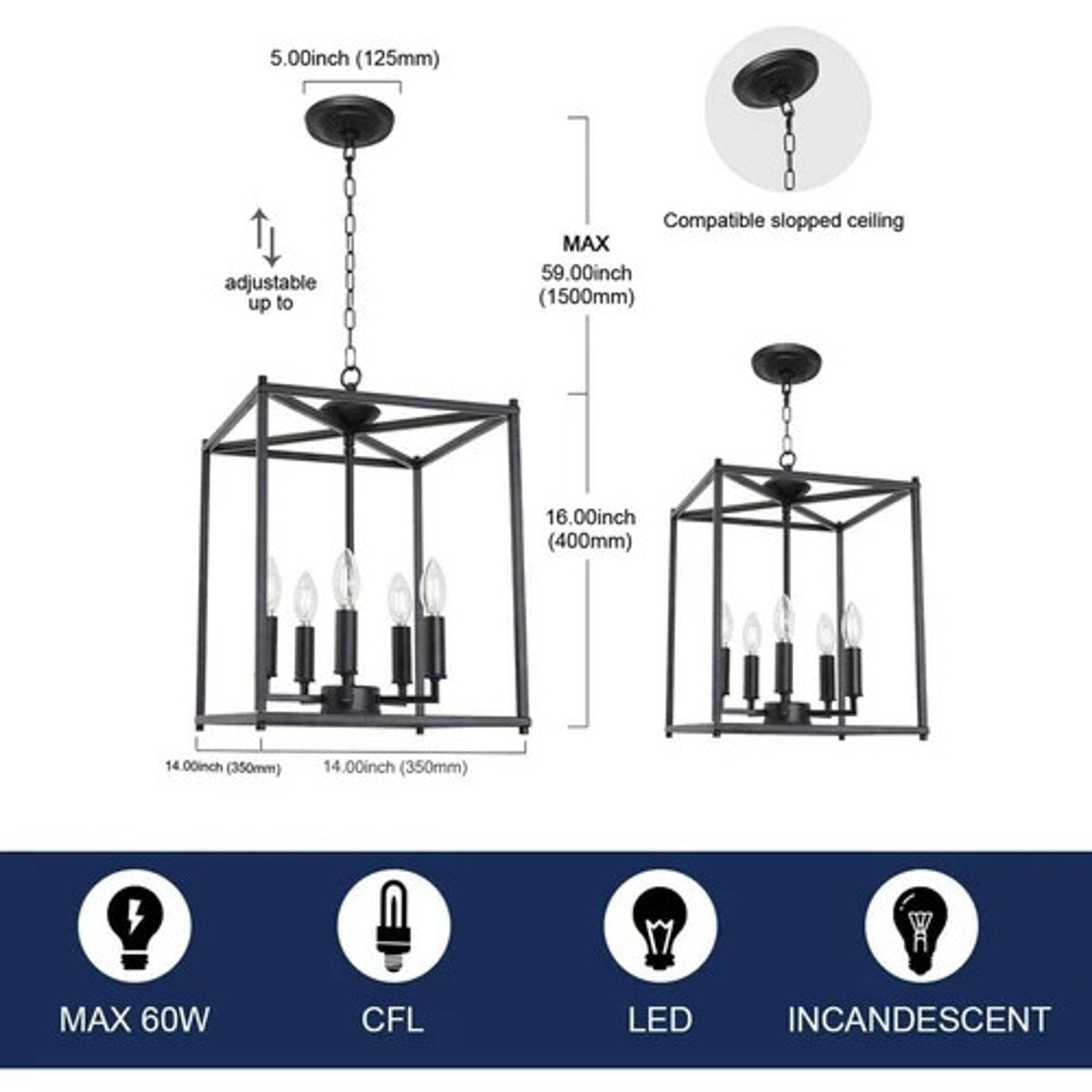 Bring timeless farmhouse style into your home with this Lucidce 4-Light Pendant Chandelier. Featuring a matte black metal cage design with four candle-style bulb sockets, this hanging light combines rustic charm with modern simplicity. Perfect for dining rooms, kitchens, entryways, or foyers, it adds a warm and inviting touch to any space.